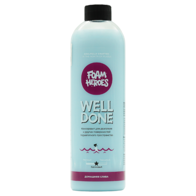 Well Done - консервант для двигателя и других поверхностей подкапотного пространства после мойки с ароматом домашней сливы Специальная формула состава насыщает цвет обрабатываемых поверхностей, придает им легкий антистатический эффект и облегчает последующую очистку: - легко проникает в труднодоступные места и вытесняет из них влагу - формирует на поверхности стойкую пленку, которая защищает металлы от коррозии -защищает обработанные поверхности от вредного воздействия внешних факторов, сохраняя резиновые и пластиковые элементы от разрушения в следствии перепадов температур Используйте Well Done после мойки подкапотного пространства для последующей консервации элементов из пластика, резины и металлов, придания им насыщенного внешнего вида и облегчения их последующей очистки Рекомендации по применению: - наносите состав только на предварительно очищенную поверхность - рекомендуется наносить состав на сухую поверхность - равномерно распылите состав на поверхность и оставьте на 10-15