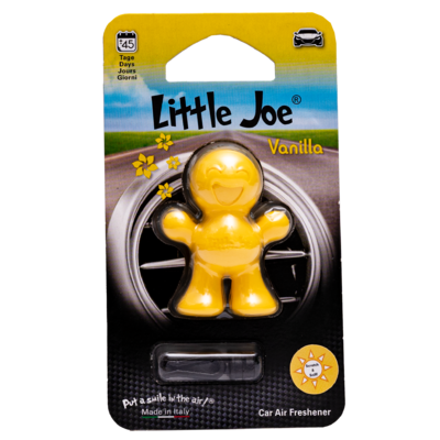 Little Joe — автомобильный освежитель воздуха Happy 3D с уникальной двухступенчатой системой клипсования, которая проста в установке и обеспечивает естественный и ненавязчивый аромат в течение примерно 45 дней. Особенности: Назначение: на дефлектор автомобиля; Материал: специальный полимер с впечатанным на этапе производства ароматом; Срок действия: до 45 дней; Сделано в Италии.