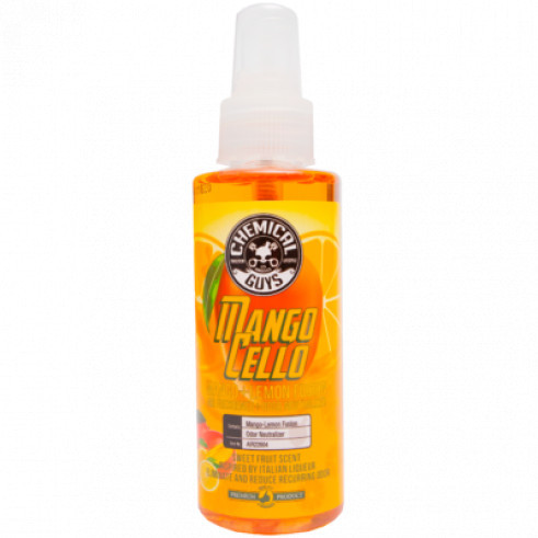 Mangocello - это роскошный аромат, который наполняет воздух сочным ароматом спелых манго в сочетании с резкими нотами бодрящих цитрусовых, вдохновленных настоящим итальянским фруктовым ликером. Обычные освежители воздуха пахнут дешевыми химикатами и обжигают ноздри. Компания Chemical Guys изготавливает все освежители воздуха и ароматизаторы премиум-класса из натуральных ингредиентов, очищенных эфирных масел, пропеллентов и эмульгаторов на водной основе. В результате получается сладкий аромат цитрусовых нот и сочного манго! Способ применения: Очистите и пропылесосьте поверхность. Уберите остатки старой пищи или пятна, которые могут придавать неприятный запах салону автомобиля; Хорошо встряхните бутылку; Слегка распылите вокруг ковров, тканевой обивки и под сиденьями; Наслаждайтесь свежим ароматом.