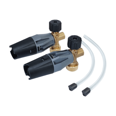 Пенокомплект инжектор без бутылки, фитинг BSP ¼ , предназначен для преобразования химических растворов в пенное состояние при нанесении на различные поверхности. Аппарат работает за счёт разряжения, втягивая разведённый состав из колбы, смешивая с воздухом, преобразует его в пену. Новая модель с улучшенным пенообразованием Технические характеристики: Резьба: BSP ¼; Давление: 28Mpa /280 бар; Форсунка диаметр: 1.25 мм; Смесь забора при закрученном клапане 1:10; Foam Lance without bottle.