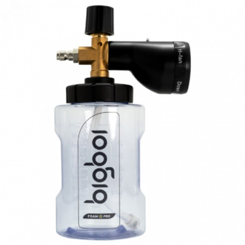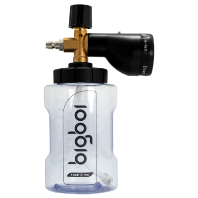 FOAMRPRO - это запатентованный профессиональный инжектор для АВД WASHR FLO или любой мойки высокого давления с быстроразъемным соединением G14 1/4. FOAMRPRO выдает очень густую пену с помощью 5-сторонней запатентованной конструкции распыления. Подача воды или пены регулируется положением переключателя: Подача чистой воды для ополаскивания производится при поворачивании ручки управления против часовой стрелки до крайнего положения; Подача обильной пены производится при поворачивании ручки управления по часовой стрелке до крайнего положения. Основные компоненты FOAMRPRO изготовлены из высококачественной латуни. Бутылка изготовлена из химически стойкого высококачественного полиэтилена высокой плотности, толстого и прочного. Новая черная пластиковая крышка с большим горлышком позволяет легко и плавно навинчивать и снимать бутылку. Узкое горлышко большого размера позволяет легко наливать в бутылку мыло и воду, предотвращая проливание. Прозрачная бутылка емкостью 1 литр имеет больший