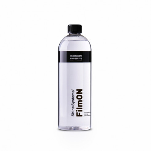 Концентрированный раствор для установки автомобильных полиуретановых, атермальных и тонировочных плёнок. Также подходит для инсталляции архитектурных пленок различных типов. FilmOn помогает максимально комфортно установить пленку на большие по площади элементы, не давая ей залипать на поверхности, а также придаёт клеевому слою высокую степень адгезии. Обладает нейтральным уровнем pH, благодаря чему состав быстро высыхает и не повреждает клеевой слой пленки на этапе сушки. Состав: Вода, сульфоэтаксилаты, этоксилированные спирты, бетаин, регуляторы Ph, пэг-стеарат. Разбавление водой: 1:100 – 1:300 – накачной распрыскиватель. Применение: Разведите в необходимой концентрации раствор в накачной распрыскиватель (спреер). При высокой температуре и низкой влажности необходимо увеличивать концентрацию. Перед разведением свежего раствора качественно промыть распылитель. Нельзя хранить в разведенном состоянии более 48 часов. Не допускать попадания концентрата на деликатные поверхности (салон а