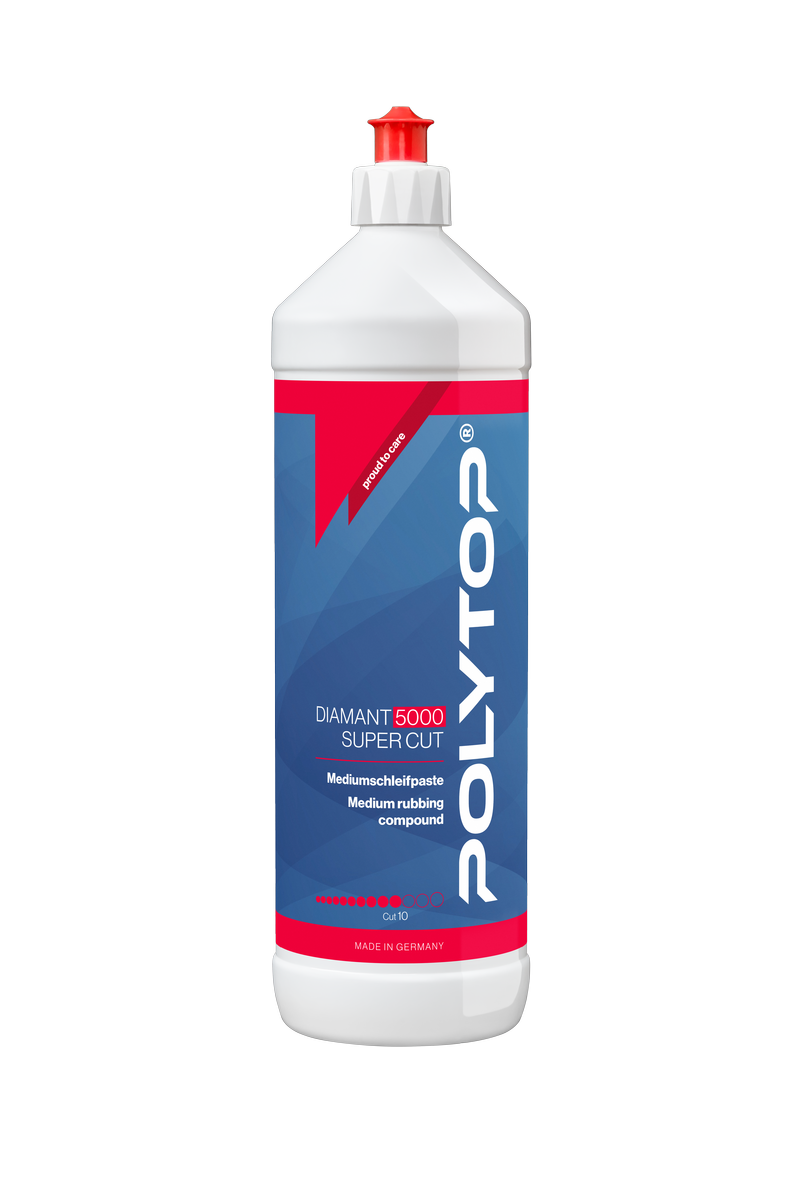 POLYTOP DIAMANT 5000 SUPER CUT Профессиональная среднеабразивная высокоглянцевая паста для одношаговой полировки. Обеспечивает удаление средне-мелких повреждений и рисок от абразивов P3000 всего за один шаг. Не оставляет голограмм! В составе пасты уникальный абразив из термически оптимизированных частиц оксида алюминия DAT последнего поколения, что гарантирует не только непревзойденную эффективность, но и однородный глянцевый финиш. Инновационная формула связующих масел предотвращает пересыхание пасты и перегрев поверхности, обеспечивая полный контроль за полировальной машинкой и простоту работы. Процесс полировки проходит без образования пыли, а остатки пасты удаляются очень легко. Подходит для использования на любых типах ремонтных и заводских лкп, включая керамолаки. На водной основе, без силикона, растворителя и филинговых компонентов. Рекомендуемые обороты (rpm): 800-1800 Уровень резки 10 из 13 Уровень блеска 11 из 13 Удаление риски от P3000 Низкое тепловыделение Матричная система Легко располировывается и легко удаляется Без силиконов Не образует пыли Ph 8,0 Условия хранения: от 0°C до 35°C