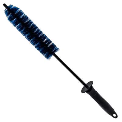 Ёршик для деликатной очистки колёсных дисков. Имеет узкий диаметр для очистки дисков с маленьким расстоянием между спицами. Гибкий стержень позволяет очищать диски со сложным дизайном. Ворс ёршика выполнен из очень мягкого ПВХ, что обеспечивает безопасную очистку даже самых чувствительных к повреждениям поверхностей. Ручка выполнена из пластика и резиновой рукояти, что гарантирует удобный хват и исключает скольжение в руке во время работы. Щетина ёршика химостойкая и подходит для работы с любыми очистителями и шампунями. Размеры: Общая длина: 60 см; Длина щетины: 22 см; Диаметр щетины: 6 см.